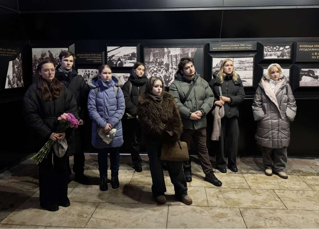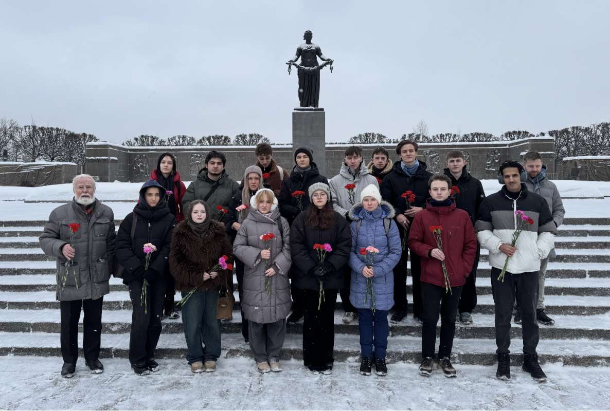 После чего студентами были возложены цветы у монумента Матери-Родины, а также прочитаны слова ленинградской поэтессы Ольги Берггольц на стене памятника. Ее слова “Никто не забыт, ничто не забыто” стали лозунгом Великой Отечественной войны и, в том числе, подвига блокадных ленинградцев.